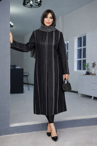 مانتو ژاکارد دکمه مخفی بلند